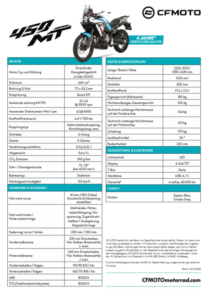 CFMOTO 450MT 2026 NEU in NEBULA BLACK,