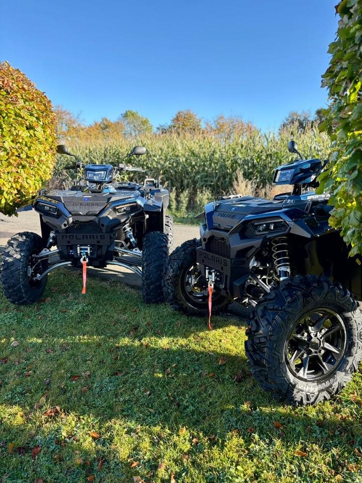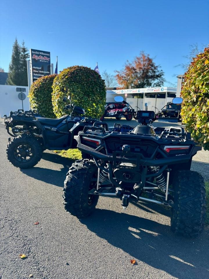 Wir freuen uns, Sie bei BigAirMax willkommen zu heißen! Als Ihr exklusiver Partner für Can-Am ATVs und SSVs in der Euregio Aachen, Eschweiler, Jülich, Düren, Euskirchen und der Nordeifel stehen wir Ihnen mit jahrelanger Erfahrung zur Seite. Unser familiengeführtes Unternehmen legt großen Wert auf persönliche Betreuung und individuelle Lösungen. Egal, ob Sie spezielle Umbauten für die Jagd, den Rettungsdienst oder die Waldbrandbekämpfung benötigen wir sind Ihr kompetenter Ansprechpartner. Unsere langjährigen Referenzen sprechen für sich und belegen unsere Expertise in der Branche. Wir sind stolz darauf, Ihnen maßgeschneiderte Lösungen anzubieten, die genau auf Ihre Bedürfnisse abgestimmt sind. Zögern Sie nicht, uns zu kontaktieren! Wir freuen uns darauf, gemeinsam mit Ihnen an Ihren Projekten zu arbeiten. Polaris Sportsmann 1000S LOF mit Tageszulassung (Bestandsschutz) Merkmale: Motortyp 4-Takt SOHC 2-Zylinder Hubraum 952 cc Gemischaufbereitung Elektronische Einspritzung Getriebe Automatik PVT P/R/N/L/H; Kardanwelle Antriebssystem Zuschaltbarer Allrad Kühlung Flüssigkeitsgekühlt Aufhängung vorne Dual A-Arm mit 29 cm Federweg Aufhängung hinten Dual A-Arm mit 35,5 cm Federweg Bremsen vorne/hinten hydraulische Scheibenbremse, hydraulische Fußbremse hinten Parkbremse Feststellbarer Handbremshebel Reifen vorne 27 x 9-14; Duro Power Grip II Reifen hinten 27 x 11-14; Duro Power Grip II Felgen Aluminiumguss Gepäckträger bzw. Box-Kapazität vorne/hinten 91 kg / 136 kg Tankinhalt 19.9 L Bodenfreiheit 30,5 cm Fahrzeugabmessung (LxBxH) 234.9 x 144.2 x 143.5 cm Max. Nutzlast 235 kg Radstand 145,8 cm Trockengewicht 450 kg Sitzhöhe 94 cm Befestigungssystem Lock & Raid...
